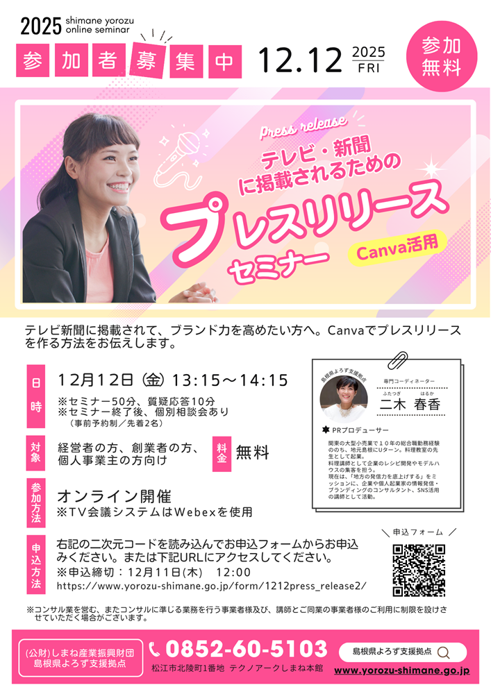 〒690-0816 島根県松江市北陵町1 番地 テクノアークしまね内 TEL:0852-60-5103 FAX:0852-60-5105